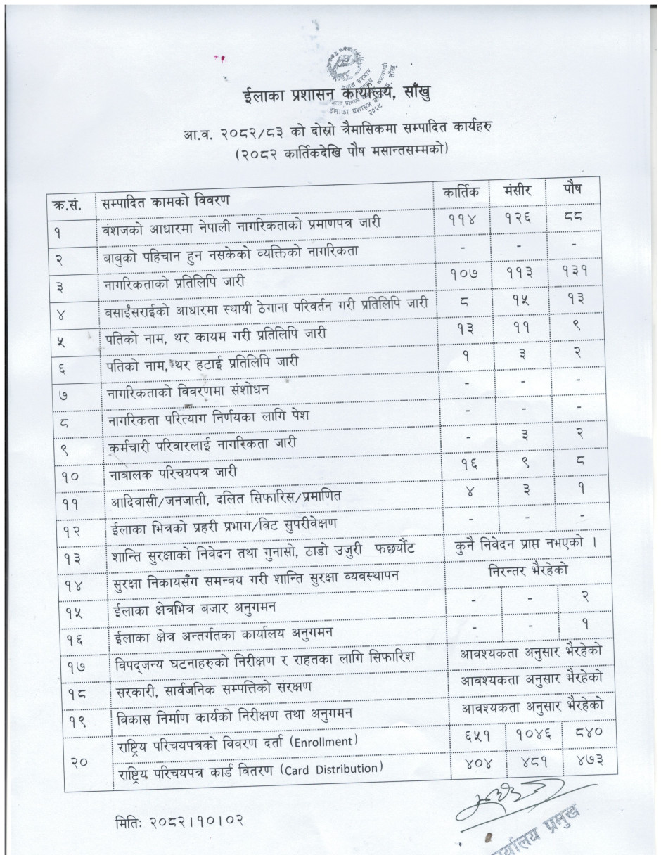 आ.व. २०८२/८३ को दोश्रो त्रैमासिक प्रगती विवरण