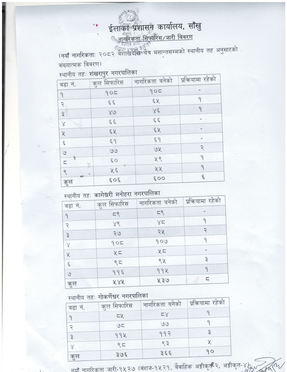 २०८२ बैशाख देेखि चैत्र मसान्तसम्म जारी नागरिकताको स्थानीय तह अनुसारको संख्यात्मक विवरण