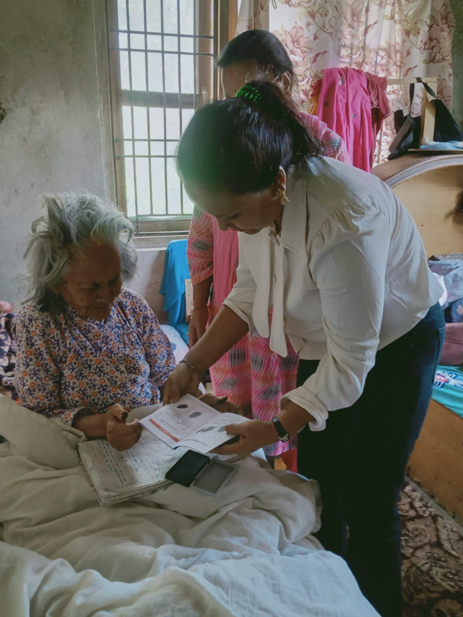 गाेकर्णेश्वर न.पा ४ काे १०० वर्षकाे जेष्ठ नागरिकलाइ घरमै गइ सेवा प्रदान गरिएकाे ।