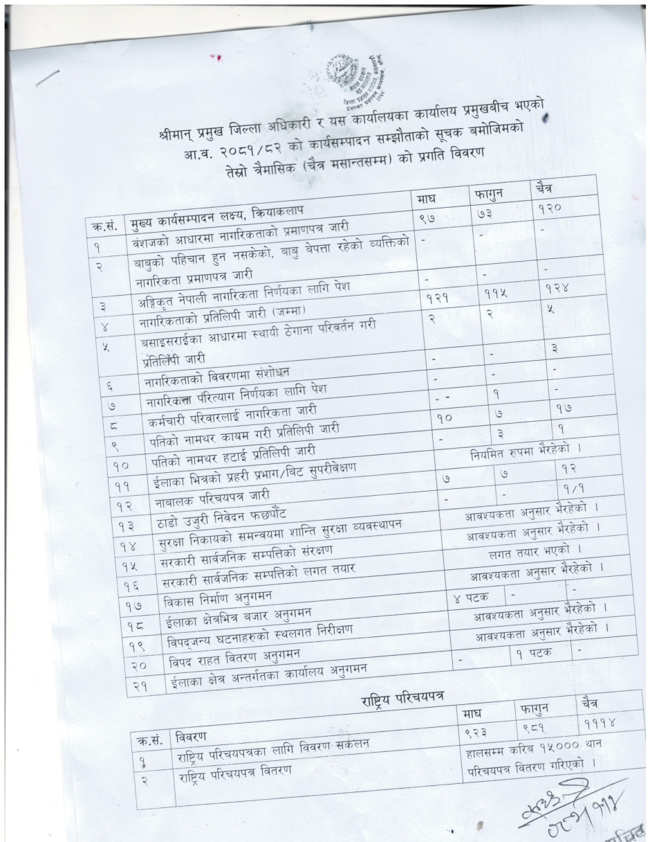 तेश्रो त्रैमासिक प्रगती विवरण
