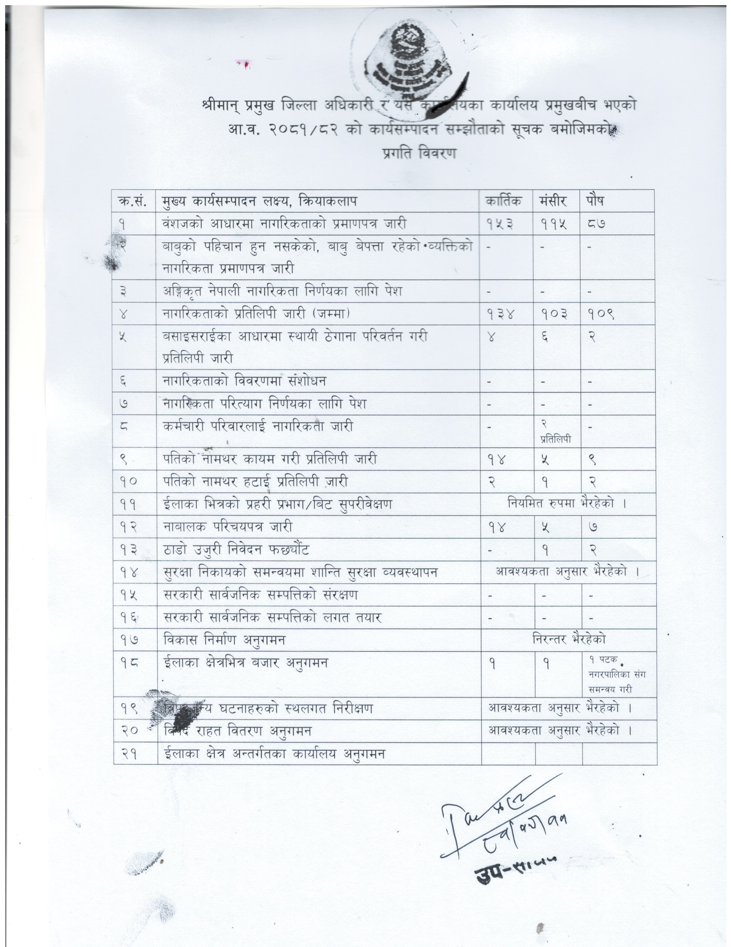 इलाका प्रशासन कार्यालय सांँखुको प्रथम त्रैमासिक प्रगति विवरण