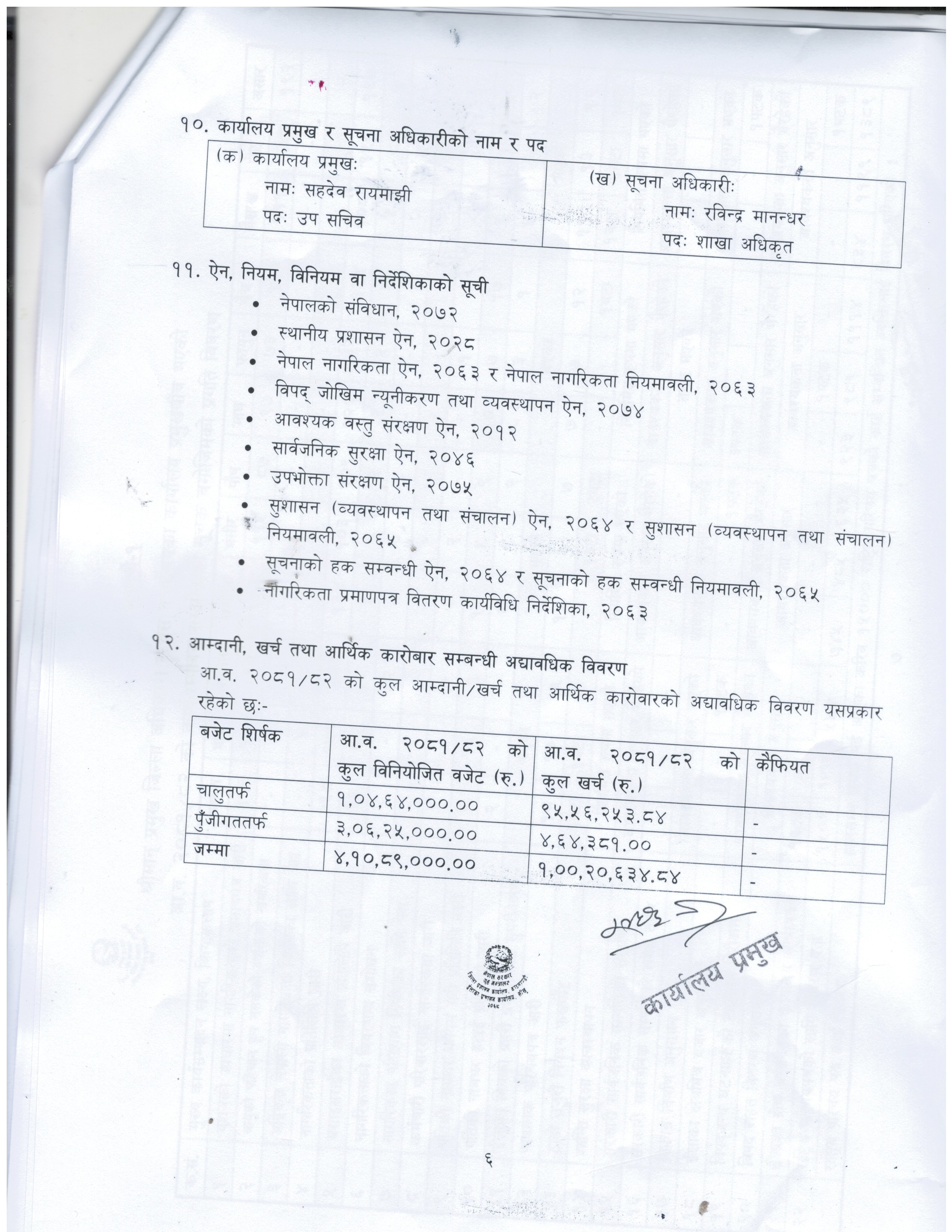 सुचना सम्बन्धी हक ऐन, २०६४ को दफा ५ (३) र सुचनाको हक सम्बन्धी नियमावली, २०६५ को नियम ३ बमोजिम सार्वजनिक गरिएको