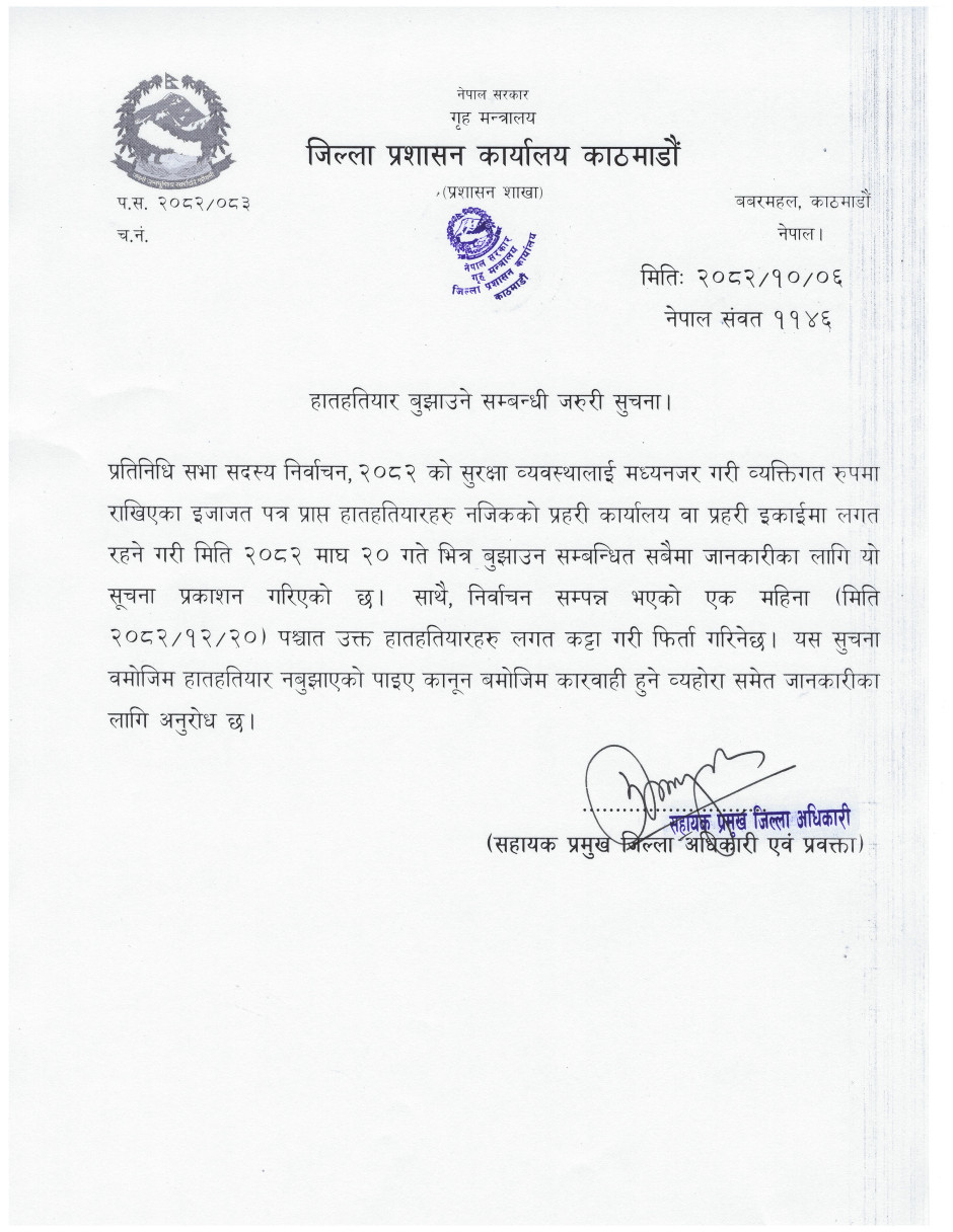 हातहतियार बुझाउने सम्बन्धी सुचना